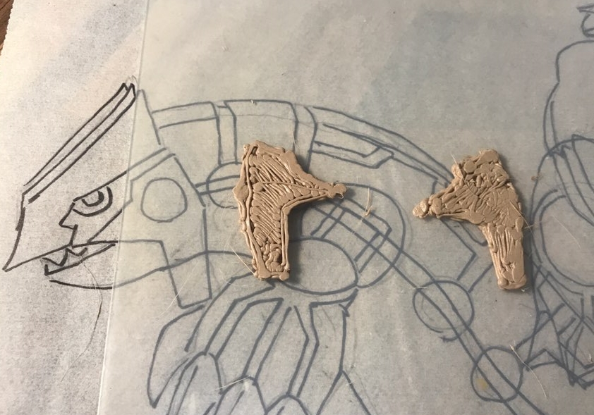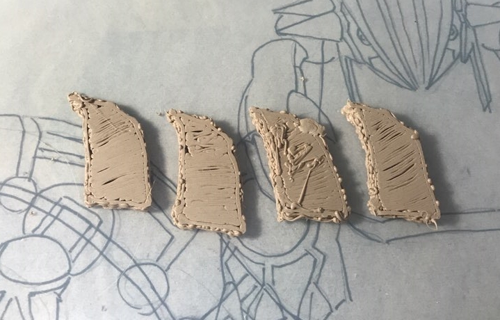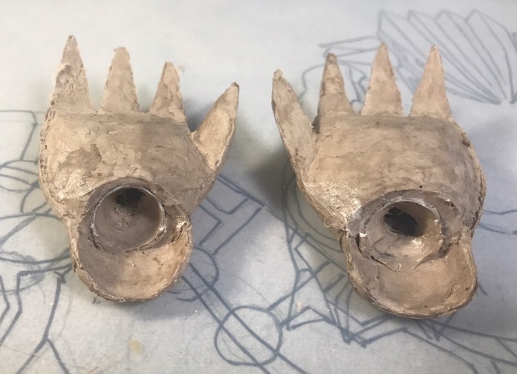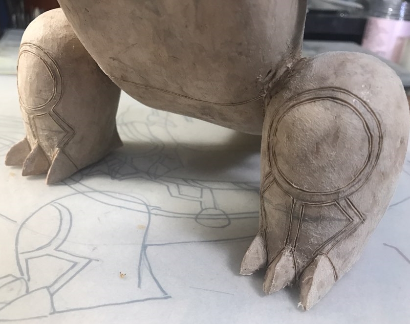 물론 인두로 새긴 라인을 다 정리해주고, 적당히 자리만 잡아둔 뿔들을 접합면을 정리해주고, 그 외 기타등등 손볼만한곳을 다 손보고 나면 이제 색칠에 들어갈 수 있을거 같습니다.