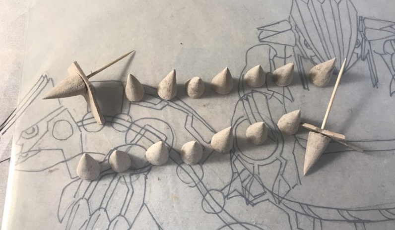 몸통 옆면에 들어갈 뿔 모양 부품인데, 한쪽에 8개, 양쪽으로 총 16개입니다.