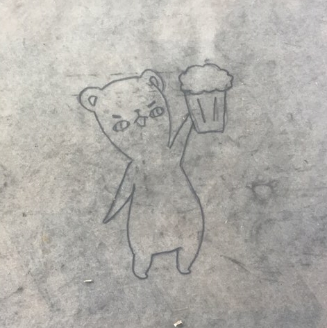 맥주는 노르스름한 색으로, 베이스는 하늘색으로 칠해주고, 얼굴을 그려넣으니 거의 완성입니다.