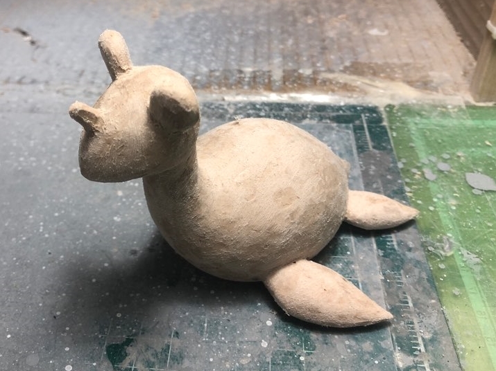 몸통을 어느정도 만들고 나서는 귀와 지느러미를 붙여줬습니다.