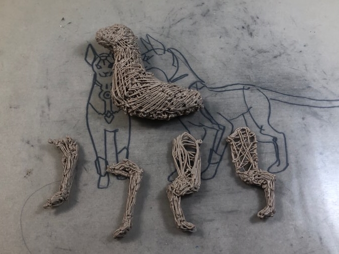 머리와 몸통까지 쭉 연결해서 뼈대를 따준 후에 적당히 볼륨을 주고 살을 붙였습니다.