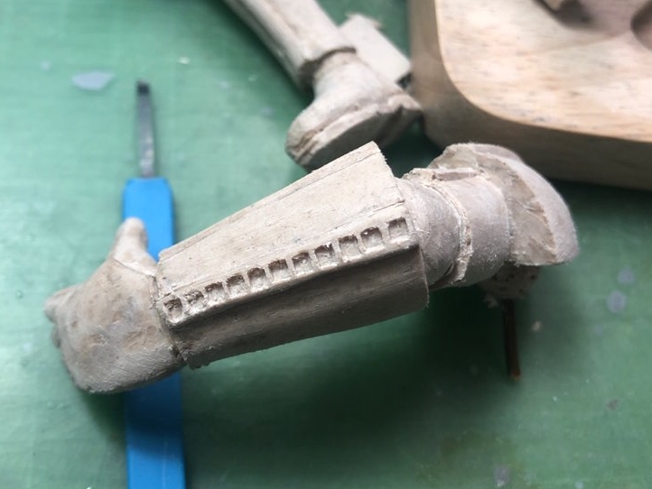 팔에 이 부분도 다른 방법으로 만들면 좀 더 깔끔하고 쉽게 만들 수도 있었을거 같은데, 무식하게 덩어리를 만들고, 한칸한칸 직접 파주느라 엄청 고생했네요.