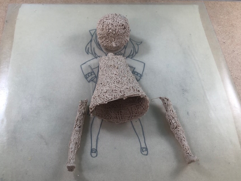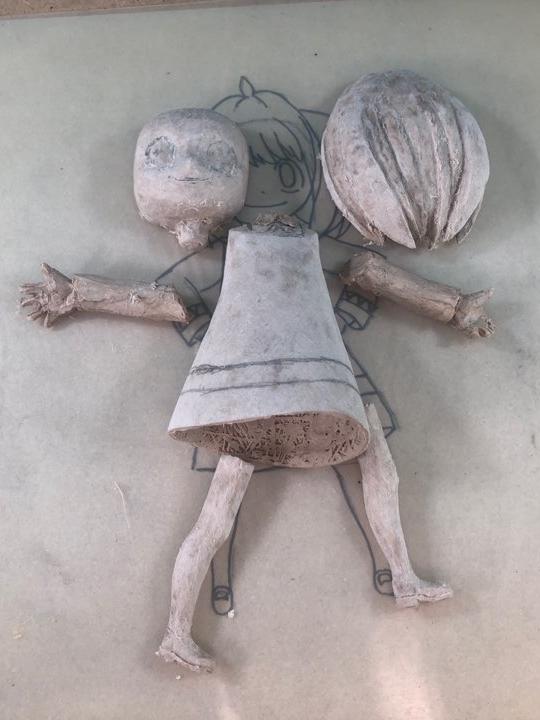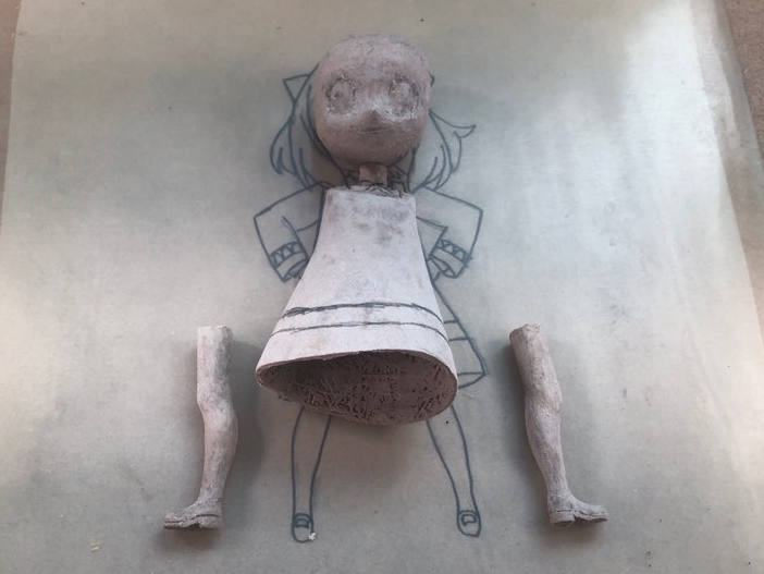 만들어둔 팔은 몸통에 붙이고, 손은 따로 떼어냈습니다.