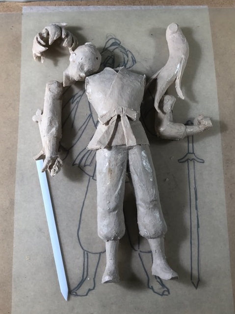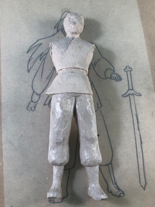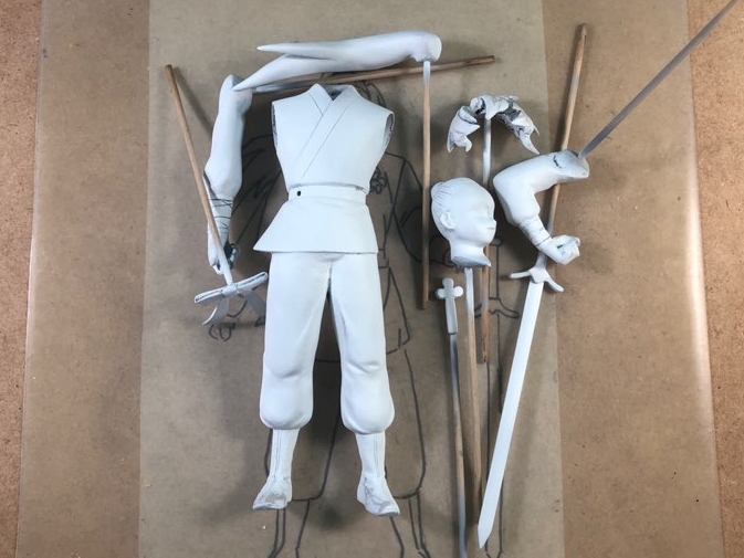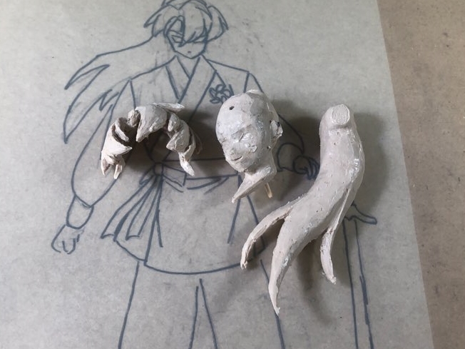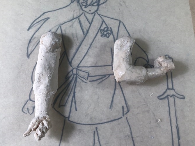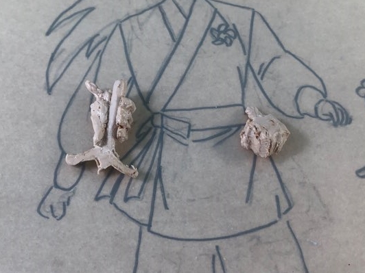 왼손은 주먹, 오른손을 칼을 쥐고 있을거라 쥐고 있을 목검 자루도 만들었습니다.
