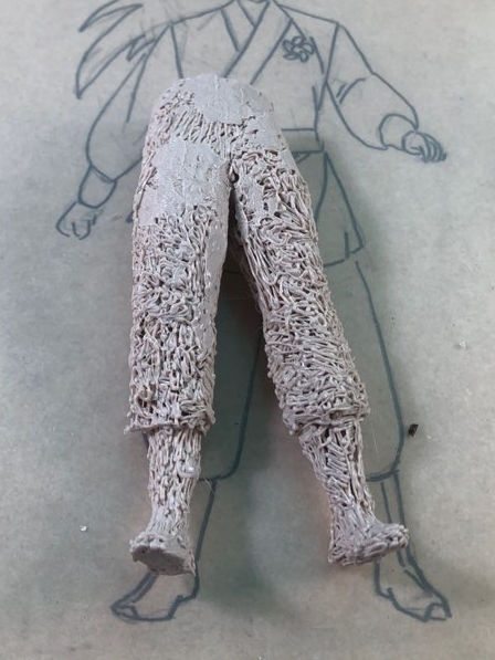 바지에 살을 붙여주고, 신발도 적당히 만들어서 다리에 붙였습니다.
